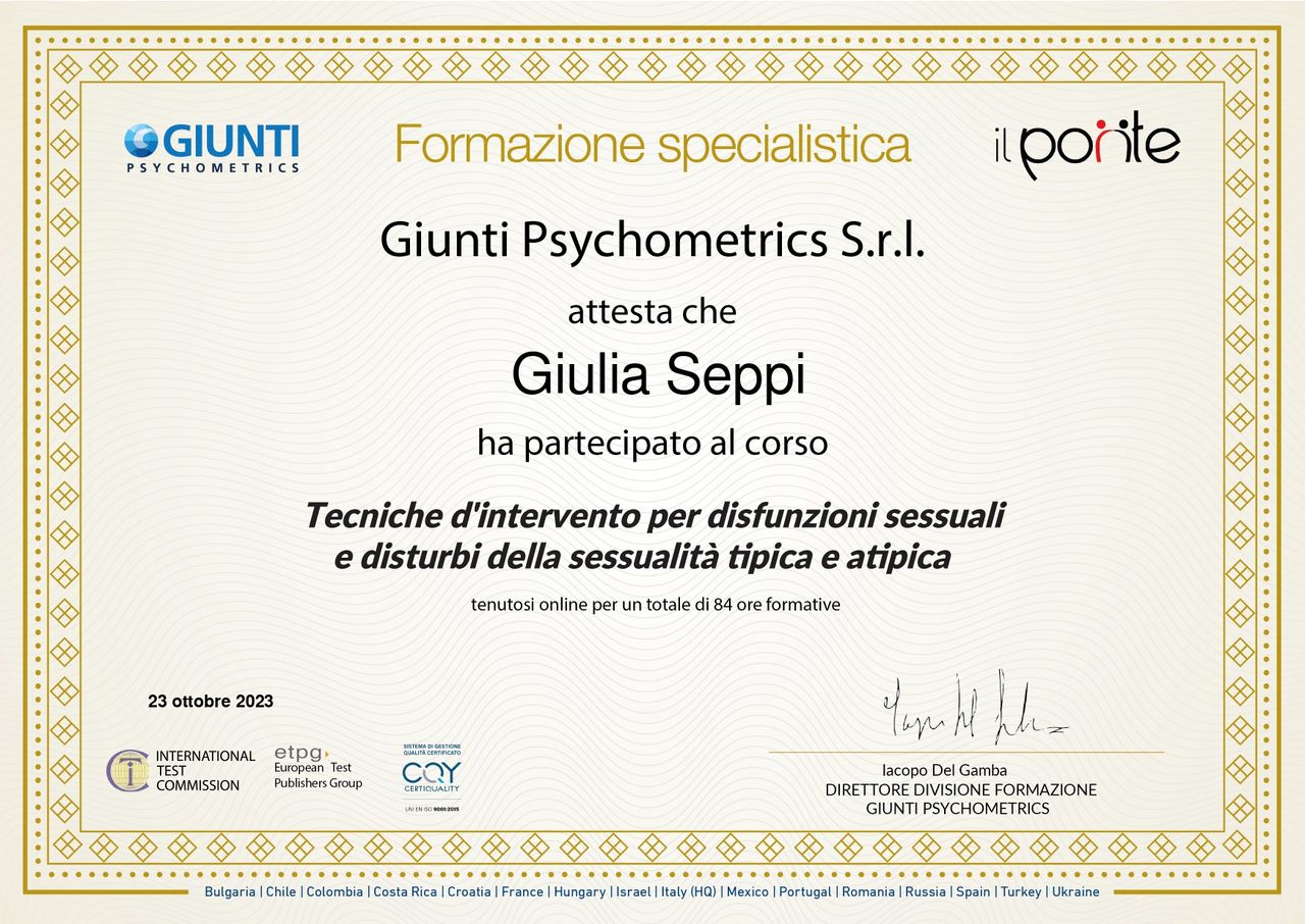 Ho avuto la fortuna di incontrare la Dott.ssa Giulia Seppi in un momento molto difficile della mia vita, quando l’ansia stava prendendo il sopravvento e limitava la mia quotidianità. Fin dal primo incontro mi sono sentito ascoltato, accolto e messo a mio agio.